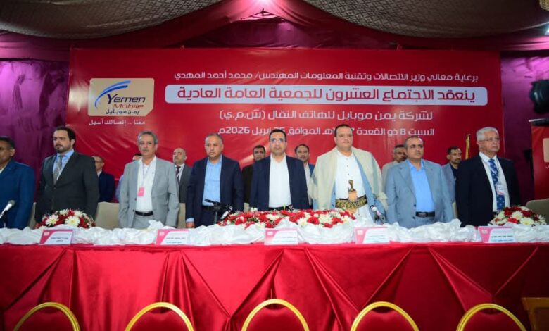 عُقد اليوم السبت 25-4-2026م الاجتماع العشرون للجمعية العامه العادية لمساهمي شركة يمن موبايل برعاية معالي…